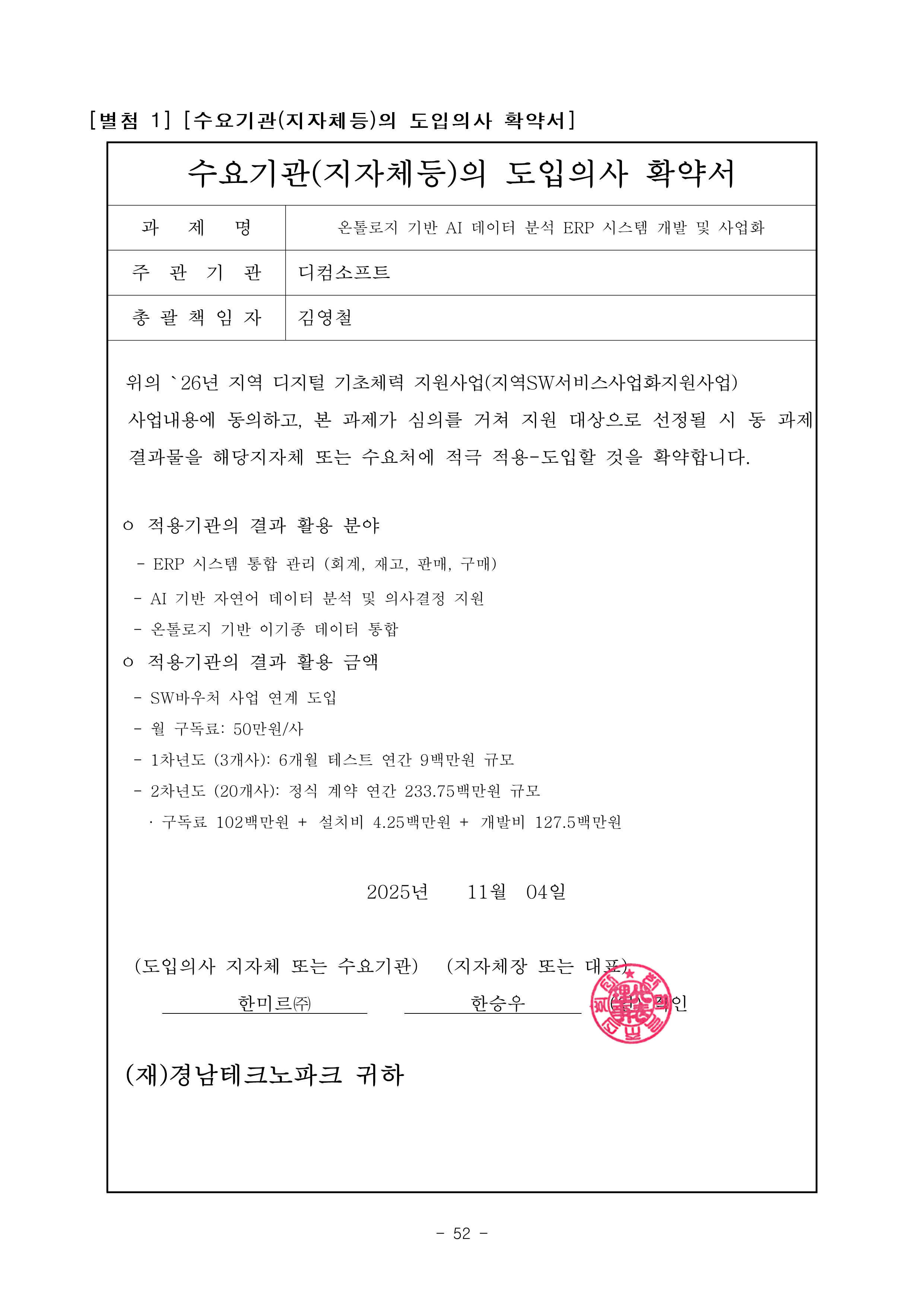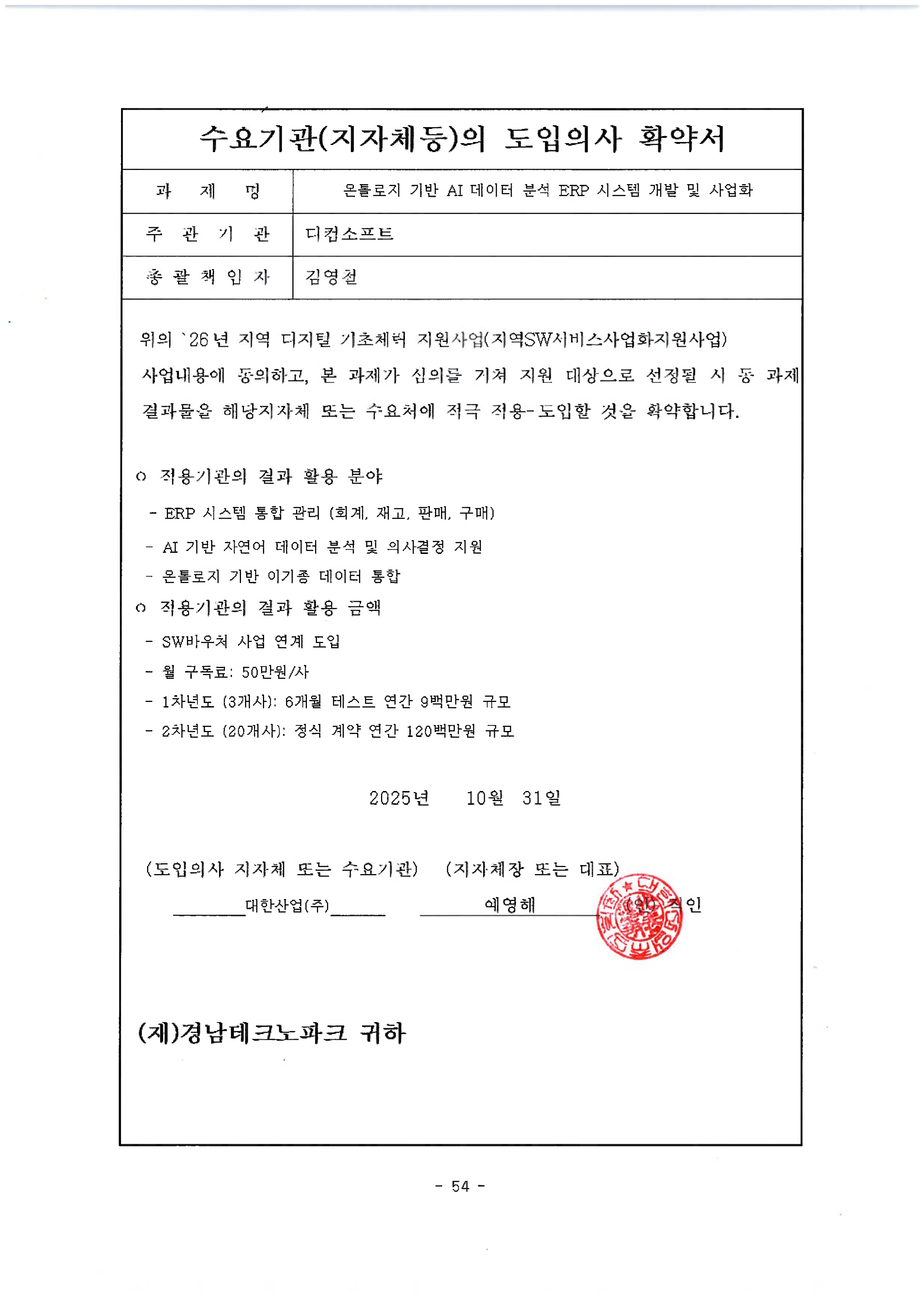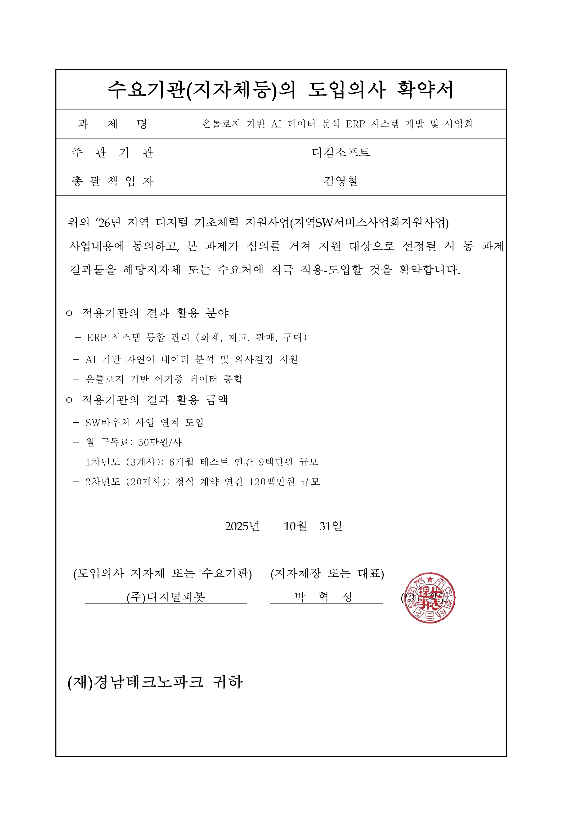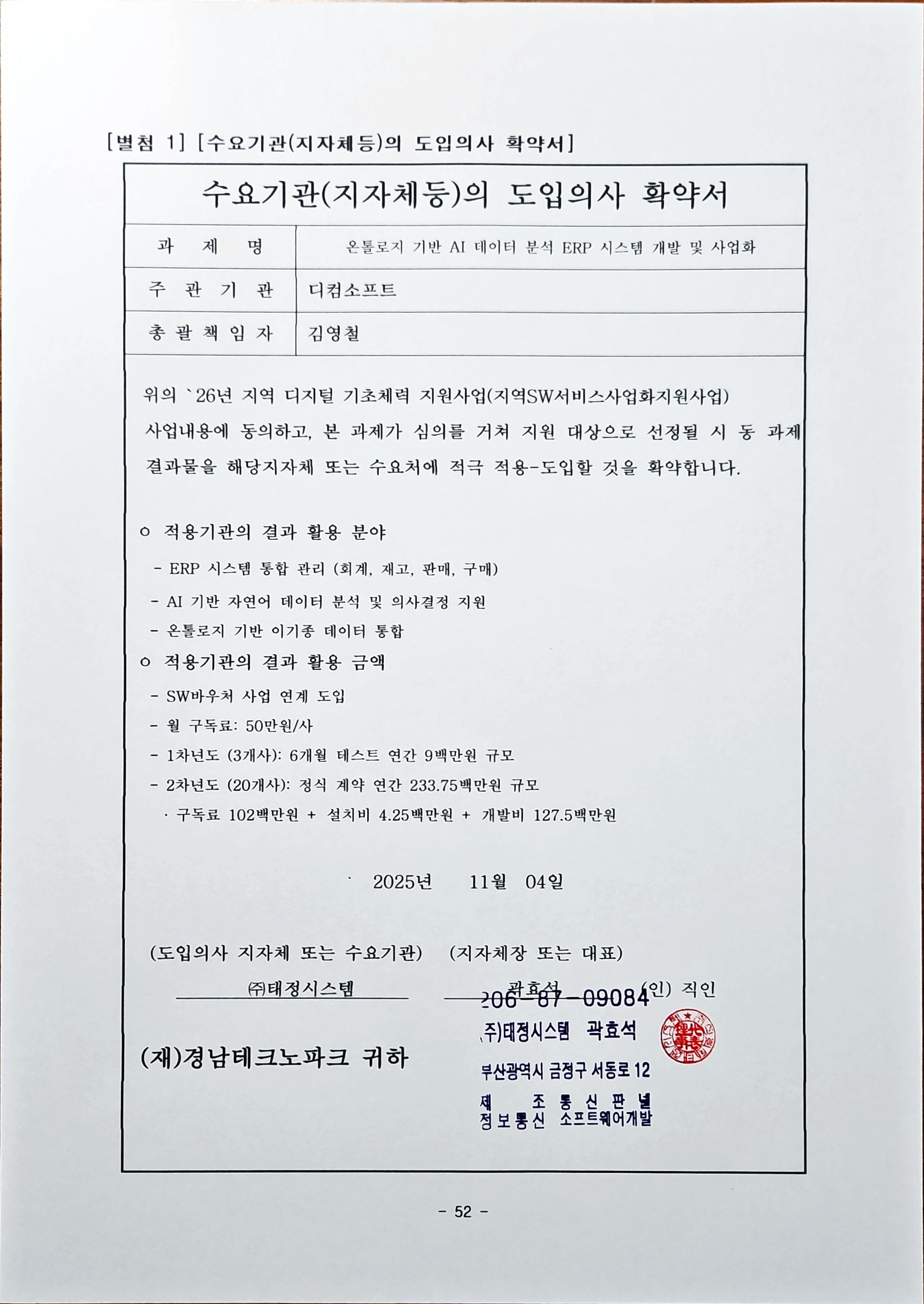 온톨로지 AI 예지보전 ERP 도입 확약서 체결 및 계약